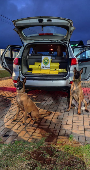 A equipe abordou um veículo Hyundai Santa Fé, conduzido por um homem de 43 anos, que estava acompanhado de uma mulher de 23 anos. Durante a vistoria, os policiais encontraram no interior do carro 18,410 kg de maconha e 7,220 kg de cocaína.