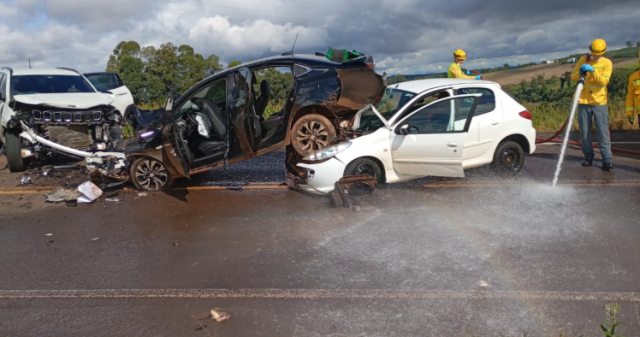 Três veículos de passeio se envolveram na colisão, um Jeep/Compass, um Peugeot/207 e um GM/Ônix. As nove pessoas atendidas foram encaminhadas ao Hospital São José de Maravilha. A Polícia Militar esteve no local, onde realizou o levantamento da cena.