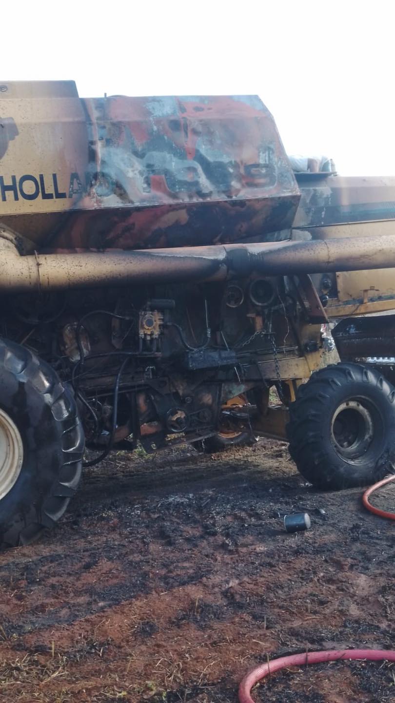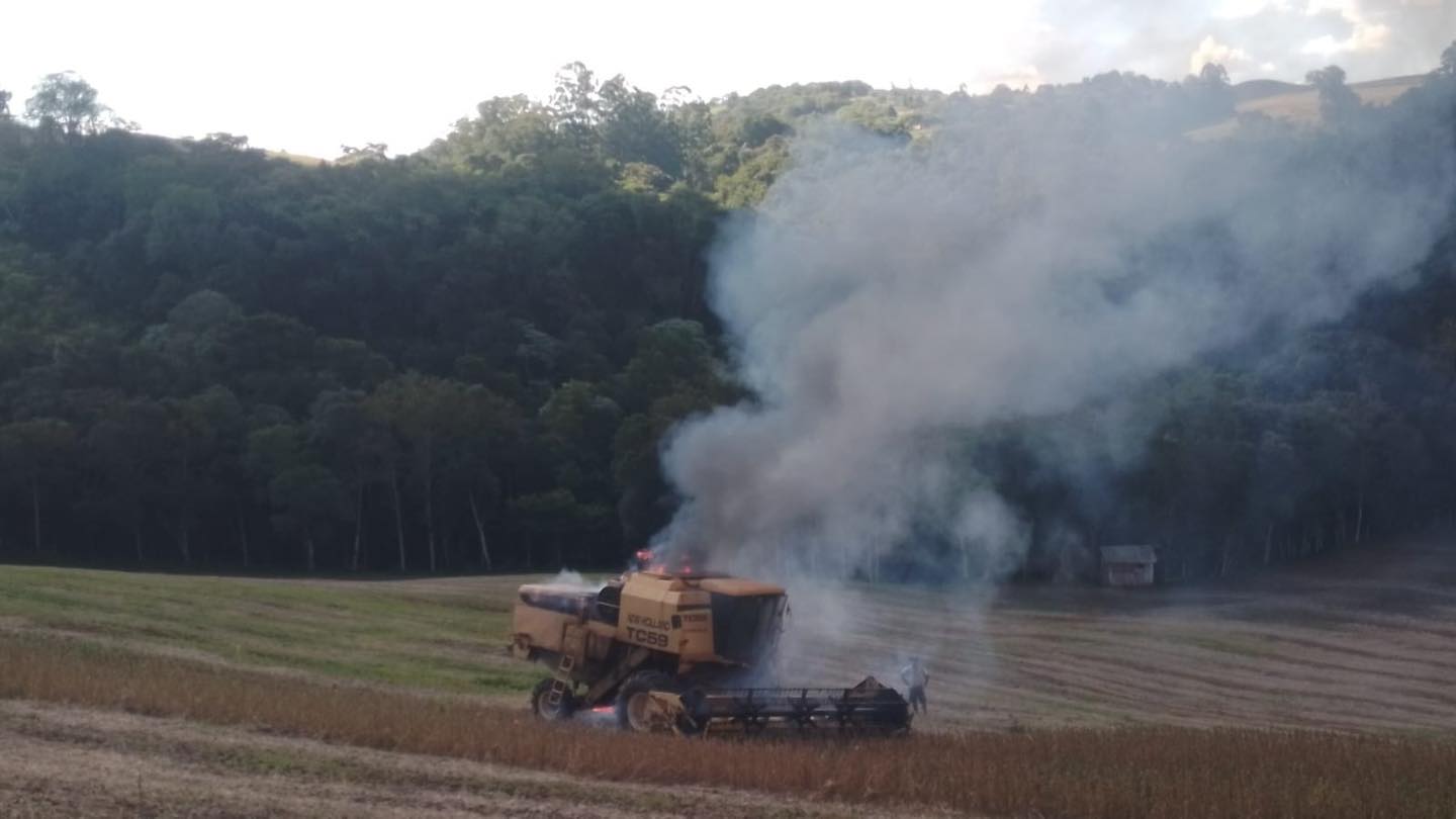 Segundo o proprietário, a colhedeira estava trabalhando na lavoura quando começou a pegar fogo. As chamas se espalharam rápido pela máquina, gerando muita fumaça, que podia ser vista de longe.