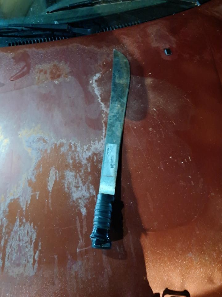 Durante a operação, dois bares foram fiscalizados. No primeiro estabelecimento, os policiais localizaram um facão com aproximadamente 50 centímetros de lâmina, além de uma foice e um machado.