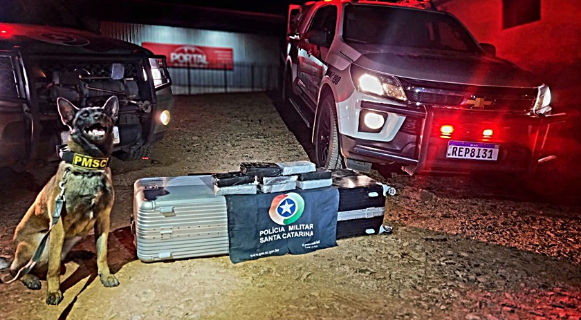 Com o auxílio da cadela Tuca foi possível localizar as drogas dentro do bagageiro do ônibus, que estavam escondidas em duas bolsas, somando 8 quilos e 655 gramas. A droga estava embalada com fita adesiva de cor cinza, na tentativa de disfarçar o odor do ilícito.