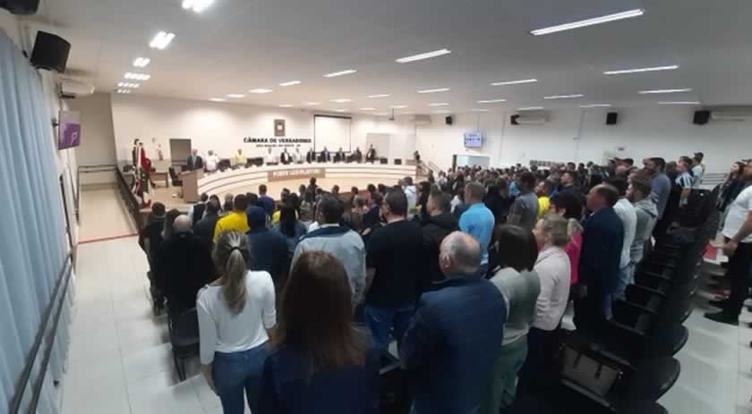 A moção foi assinada por 10 vereadores, sendo Carlos Roberto Agostini; Elói Bortolotti; Moacir Fiorini; Nélvio Paludo; Paulo Ricardo Drumm; Ravier Luiz Centenaro; Vagner Rodrigues dos Passos; Valnir Camilo Scharnoski; Vanirto José Conrad e Vilmar Bonora. O vereador Gilmar Baldissera, inicialmente, não assinou a moção, mas subscreveu durante a sessão.
