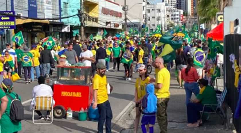 Em Itapema, manifestantes se reúnem na tarde deste domingo no bairro Tabuleiro, nas margens do km 149 da BR-101, onde há pessoas balançando a bandeira do Brasil no acostamento. Outro grupo maior aparece próximo à marginal, em barracas, também com bandeiras.Itajaí
