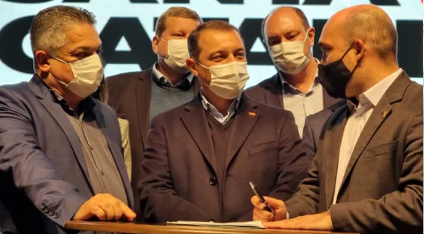 A solenidade em Chapecó foi acompanhada pelos secretários de Estado da Infraestrutura, Thiago Vieira, do Desenvolvimento Econômico Sustentável, Luciano