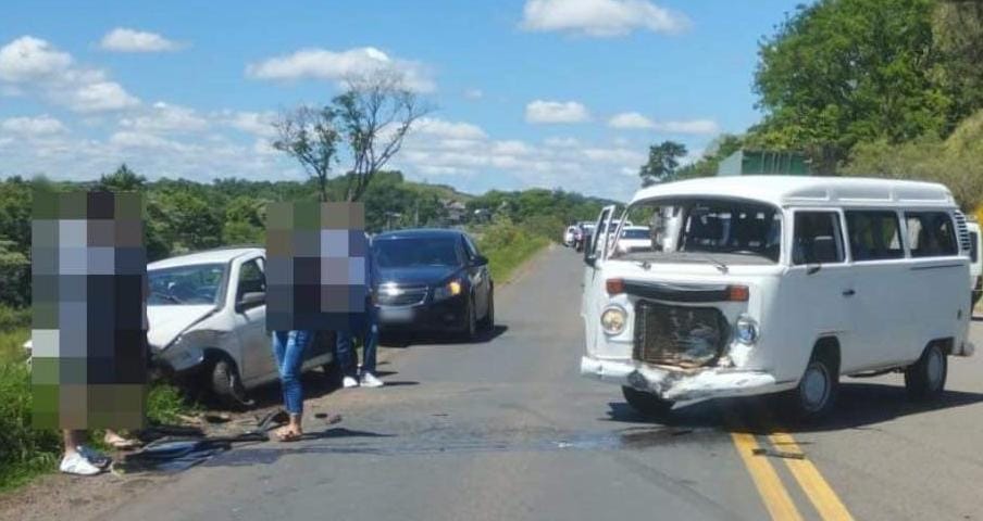 Uma colisão envolveu um caminhão, uma VW/Kombi e uma VW/ Saveiro, por volta das 11h55 desta segunda-feira (21), na rodovia PR-483 entre o trevo da Água Branca e o trevo do Alvorada em Francisco Beltrão.