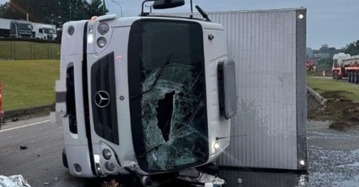O motorista do caminhão, de 27 anos, além do passageiro, de 26, sofreram ferimentos leves. Outro veículo, um Peugeot 207, também se envolveu no acidente. Ele saiu da pista e colidiu contra um canteiro da via.