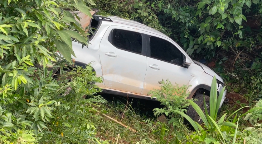 O caminhoneiro tentou frear, mas não conseguiu evitar o acidente. Com o impacto, a Fiat Strada saiu da pista e desceu uma ribanceira de cerca de 7 metros.