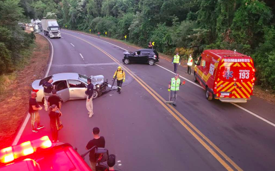 Uma colisão frontal entre dois automóveis deixou cinco pessoas feridas por volta das 5 horas da manhã deste domingo, dia 9, na BR-282, no município de Xaxim. Uma criança de 3 anos ocupava um dos carros. A batida foi entre um Kia Cerato, com placas de Canoas (RS), e um Chevrolet Agile, emplacado em Xanxerê (SC).