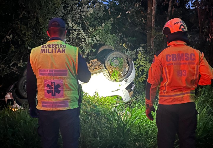 O motorista de um Fiat Mob saiu ileso após capotar o veículo na noite desta terça-feira dia primeiro na SC-155, próximo da linha Alto da Serra, em Abelardo Luz, no Oeste de Santa Catarina.
