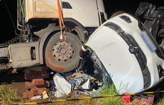 Um grave acidente foi registrado no início da noite desta segunda-feira (9) na BR-163, em Cascavel, no Oeste do Paraná. Um carro Renault Kwid, com placas de Salto do Lontra, foi atingido por um caminhão e acabou ficando preso parcialmente sob o veículo de carga.