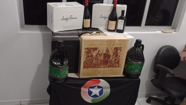 A Polícia Militar apreendeu, na noite desta terça-feira (10), 72 garrafas de vinho e 11 litros de azeite de oliva transportados de forma irregular em um ônibus, no terminal rodoviário de São Miguel do Oeste.