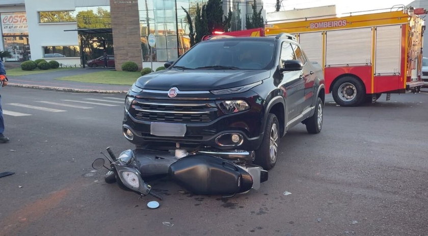 Na manhã desta quarta-feira (11), o Corpo de Bombeiros de Dionísio Cerqueira atendeu um acidente de trânsito entre um carro e uma moto na Avenida Washington Luiz, próximo ao Portal Tri.