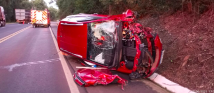 Um motociclista de 28 anos morreu após uma colisão frontal com um carro na BR-282, em Pinhalzinho no fim da tarde deste domingo (15). O impacto foi tão forte que o automóvel capotou. Quatro pessoas que estavam no veículo ficaram feridas.