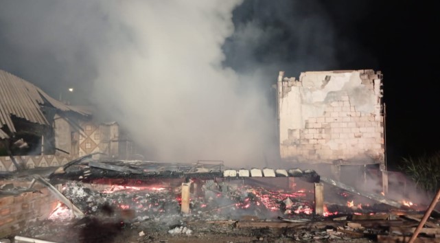 O comboio foi rapidamente ao local, onde existem várias chácaras urbanas e a casa estava em chamas e já praticamente destruída pelo fogo.