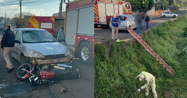 Segundo informações, o condutor da moto seguia pela Rua Minas Gerais e acabou avançando a Rua Campo Largo que é preferencial. Com o impacto da colisão, o condutor da moto que seria menor de idade acabou sendo arremessado dentro do Rio Lonqueador.