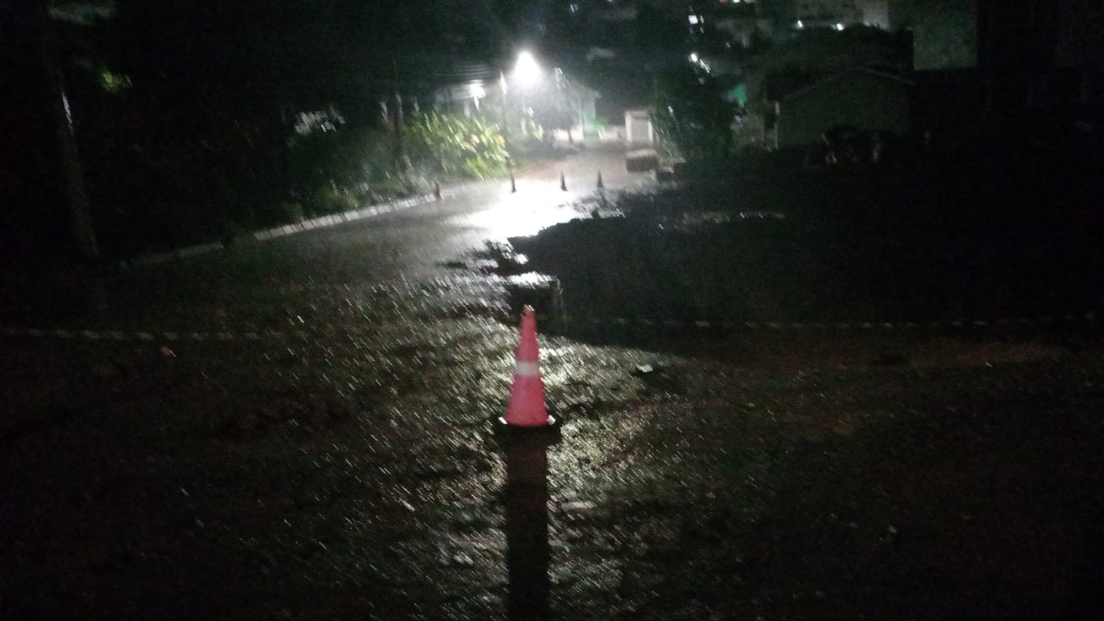 Uma rua do bairro Cinquentenário, em Concórdia, no Oeste catarinense, precisou ser interditada na madrugada desta sexta-feira, dia 20, em razão de um desmoronamento, causado pelas intensas chuvas que atingem toda a região.