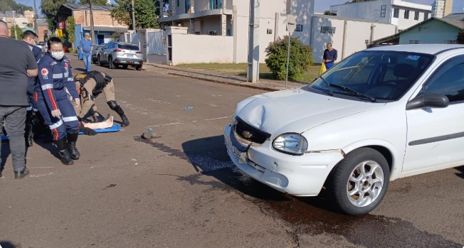 Um homem ficou ferido após uma colisão envolvendo uma moto e um carro na tarde desta sexta-feira (11), no Bairro Vila Nova em Francisco Beltrão. Conforme informações, a motocicleta Honda/Titan trafegava pela Rua Bahia e o automóvel GM/Classic pela Rua Santo Fregonese, quando acabaram colidindo.