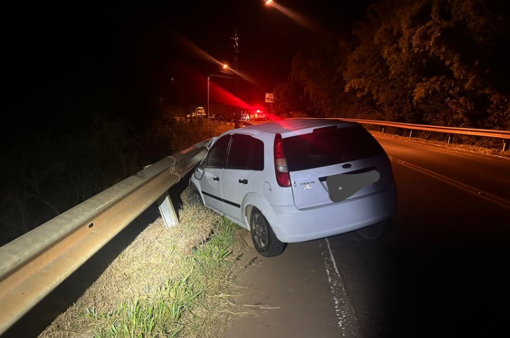 O motorista de um Ford Fiesta bateu o veículo contra um guard rail para evitar uma colisão contra uma motocicleta na noite de domingo, dia 13, na SC-480 em Ipuaçu, no Oeste catarinense.