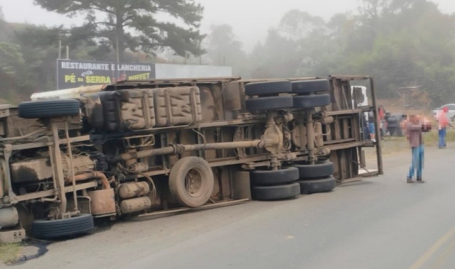 Um caminhão carregado de carne tombou na BR-470, em Pouso Redondo, no Alto Vale do Itajaí. O acidente ocorreu por volta das 7h desta quarta-feira (16). De acordo com a Polícia Rodoviária Federal (PRF), parte da mercadoria foi saqueada antes de as equipes chegarem ao local.