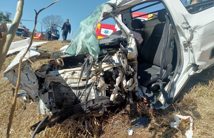 No local, foi encontrada uma Saveiro com a dianteira totalmente danificada e fora da pista. O motorista, de 23 anos, estava preso nas ferragens e precisou ser removido pelas equipes. A vítima foi socorrida com politraumas na cabeça, nas pernas e braços, sendo encaminhada ao Hospital Regional do Oeste (HRO), de Chapecó, pelo helicóptero do Saer.
