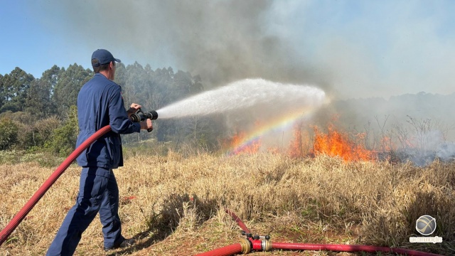 As chamas, que se apresentavam em grande proporção, atingiram uma área com vegetação seca. A situação foi agravada pela falta de chuvas e pelas geadas dos últimos dias, condições que facilitam a rápida propagação de incêndios.