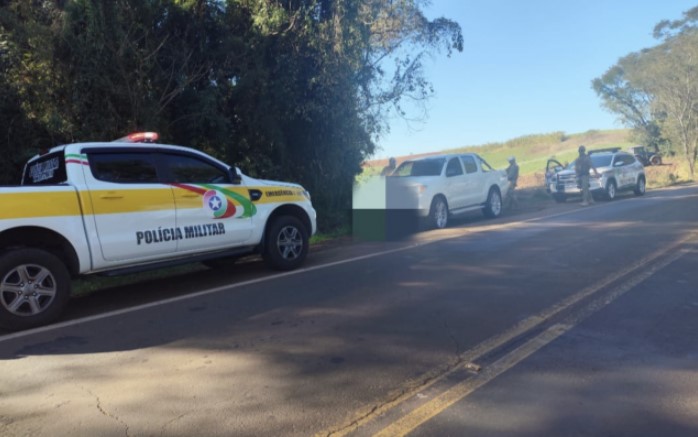 Imediatamente, as guarnições intensificaram as buscas pela caminhonete. Com o apoio de uma equipe da Polícia Militar Rodoviária, a Hilux foi localizada e abordada na rodovia SC-163, em Iporã do Oeste.