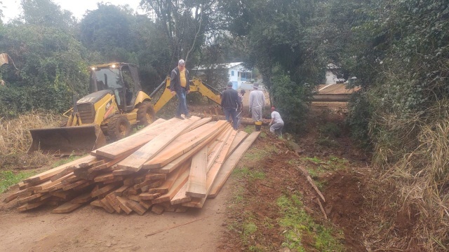 Rafael explica que foi recuperada uma ponte em Linha Traíra, acesso à Linha Cordilheira, e outra ponte recuperada foi também em Linha Traíra próximo ao campo da comunidade. Outro local que recebeu uma nova estrutura foi em Linha Liso, próximo à saída para a cidade.