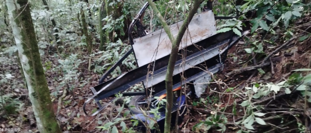 A guarnição da PM foi acionada via Central de Operações (COPOM) para atender a uma ocorrência de encontro de objeto. No local, com o auxílio da vítima e de populares, foi possível localizar o sidecar jogado em uma mata, em um penhasco, próximo ao cemitério do Bairro Santa Rita.