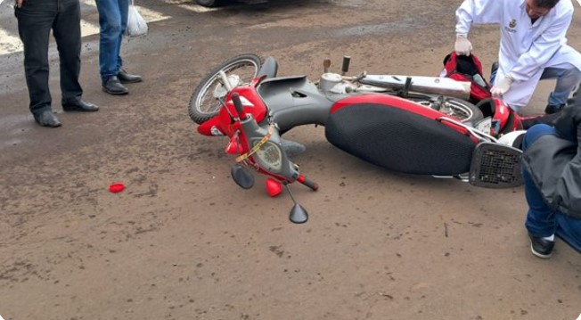 Uma colisão lateral envolvendo um automóvel Voyage e uma motocicleta Honda Biz deixou uma mulher ferida. A colisão ocorreu por volta das 11 horas desta segunda-feira (4), no cruzamento da Rua Romário Rodrigues de Lima com a Rua Rigoleto Andreoli, no Centro de Marmeleiro.