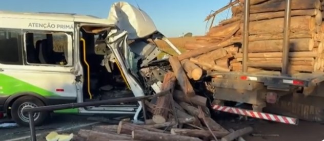 Um acidente envolveu uma van da Secretaria de Saúde de Ribeirão do Pinhal e um caminhão carregado com madeira na manhã desta quarta-feira (6), na rodovia PR-862, Contorno Norte de Ibiporã no Paraná. Na van, além do motorista, estavam oito pacientes que seriam levados ao Honpar (Hospital Norte Paranaense) para exames de rotina.