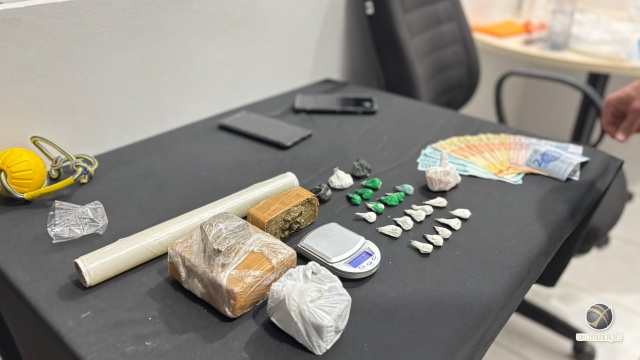 Com o apoio do Canil, os policiais fizeram buscas na residência do homem e localizaram cerca de 580 gramas de maconha, 30 gramas de crack, 30 gramas de cocaína, mais de R$ 600 em dinheiro, celulares e um caderno com anotações relacionadas à contabilidade do tráfico.
