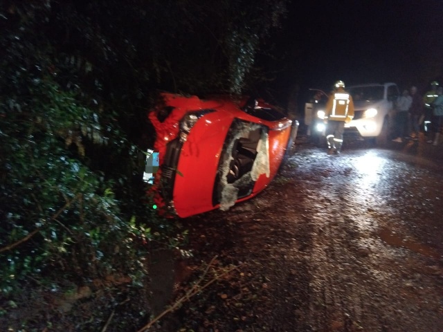 Duas pessoas ficaram feridas após um veículo tombar na estrada geral da linha São Pedro, interior de Tunápolis. O acidente ocorreu por volta das 21h40 desta quarta-feira (7).