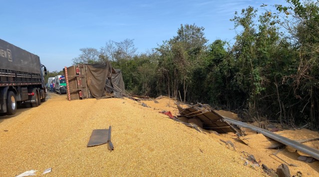 Um grave acidente na manhã desta terça-feira (19), mobilizou equipes de resgate e socorro na BR-163 em Capitão Leônidas Marques. Uma carreta carregada com milho tombou em uma curva no trecho sentido a Realeza e o motorista precisou ser socorrido após ficar preso na cabine.