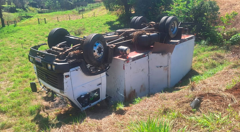 No caminhão estavam o condutor e seu pai, que apesar do susto não sofreram ferimentos. A carga ficou espalhada no local e a ocorrência foi registrada para os devidos encaminhamentos.