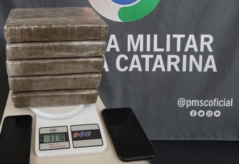 Ao perceber a presença da viatura, o passageiro dispensou uma mochila em um canteiro. A guarnição iniciou acompanhamento e abordou o veículo próximo ao lago municipal. Dentro da mochila, foram encontrados quatro tabletes de maconha, totalizando aproximadamente 3,3 kg da droga.