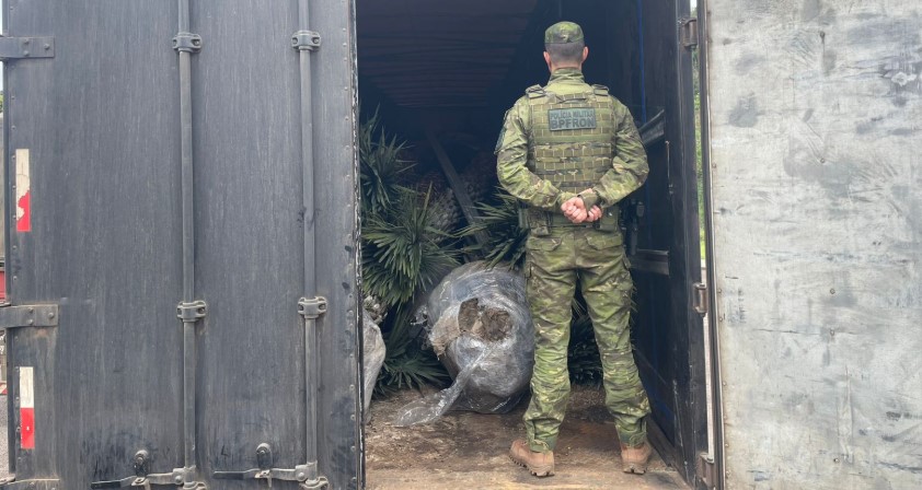 Na manhã desta segunda-feira (29), uma ação da Polícia Militar do Paraná, por meio do Batalhão de Polícia de Fronteira (BPFRON), resultou na apreensão de uma carreta carregada com 50 palmeiras tamareiras, transportadas ilegalmente do território argentino para o Brasil.
