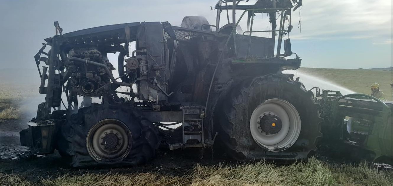 Uma máquina forrageira avaliada em mais de R$ 500 mil foi destruída por um incêndio em uma propriedade rural de Palma Sola. O equipamento, uma Krone Big X 650, com cerca de 2 mil horas de uso e acoplada a uma plataforma EasyFlow, foi completamente tomado pelas chamas.