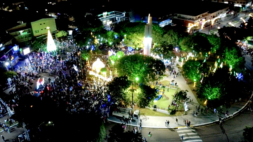 Com os sorteios encerrados, iniciou-se a contagem regressiva para o acender das luzes. A praça, lotada, acompanhou o momento em uníssono. Ao chegar no zero, toda a decoração natalina iluminou o centro da cidade, seguida por um show de fogos que marcou a abertura oficial do Santo Natal.