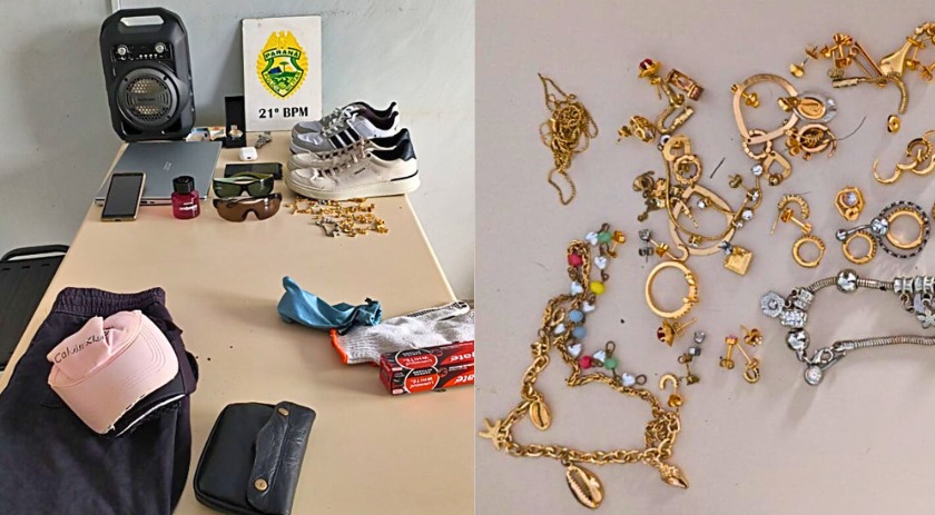 O autor do furto qualificado foi identificado e encaminhado à 19ª Delegacia de Polícia Civil, junto com o proprietário da residência e os objetos recuperados.