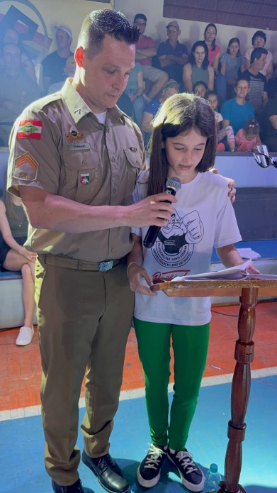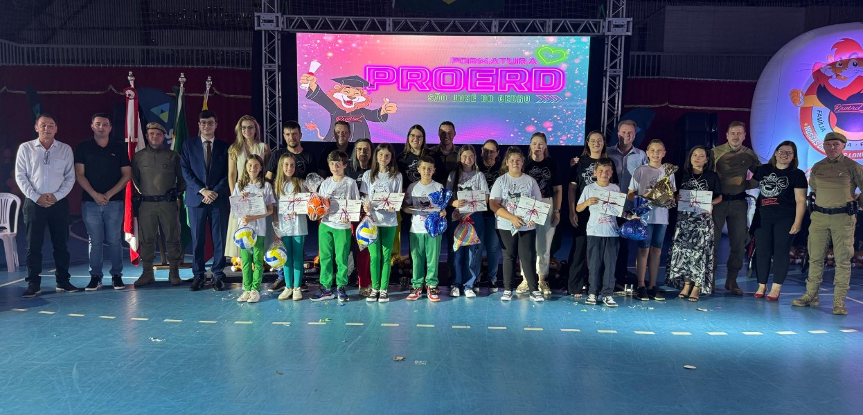 A formatura de 185 alunos do Programa Educacional de Resistência às Drogas e à Violência (Proerd) movimentou a noite de quarta-feira, 3, em São José do Cedro. Participaram estudantes das redes municipal e estadual de ensino, acompanhados por familiares e representantes da comunidade escolar.