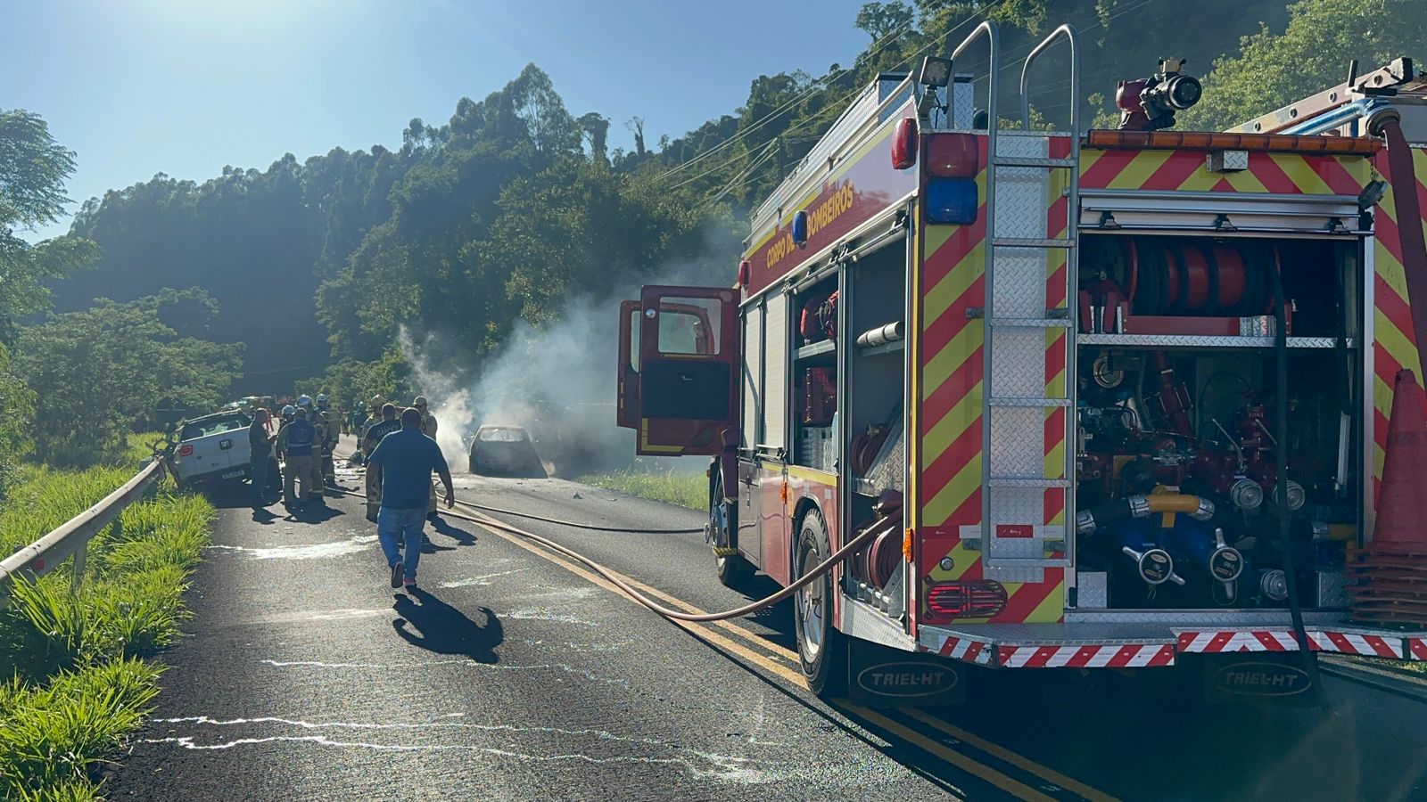 Com o impacto, o caminhão e o Palio pegaram fogo. O motorista do caminhão não conseguiu escapar e morreu carbonizado no local. A identidade da vítima ainda não foi divulgada.
