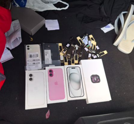 Durante a vistoria, os policiais encontraram cinco iPhones, um relógio smartwatch e cerca de 20 memórias portáteis escondidos em diferentes partes do carro.