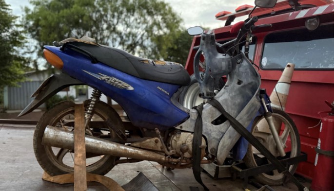 Os policiais visualizaram um adolescente conduzindo uma motoneta Honda Biz sem capacete. Ao perceber a presença da viatura, ele tentou fugir e esconder o veículo, mas foi abordado.