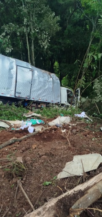 Um caminhão Volvo saiu da pista e caiu em uma ribanceira de aproximadamente 10 metros na SC-305, na localidade de Linha Prateleira, interior de Anchieta, na manhã de domingo (11). O acidente foi registrado por volta das 11h42 e mobilizou o Corpo de Bombeiros Militar do 12º Batalhão.