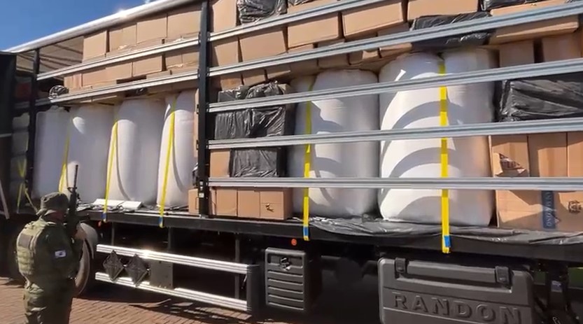 Na vistoria, os policiais encontraram 700 caixas de cigarros oriundos do Paraguai, totalizando 35 mil pacotes, além de 21 bags de arroz. O motorista relatou que saiu de Foz do Iguaçu com destino a Sorocaba (SP) e que receberia R$ 15 mil pelo transporte da carga ilícita.