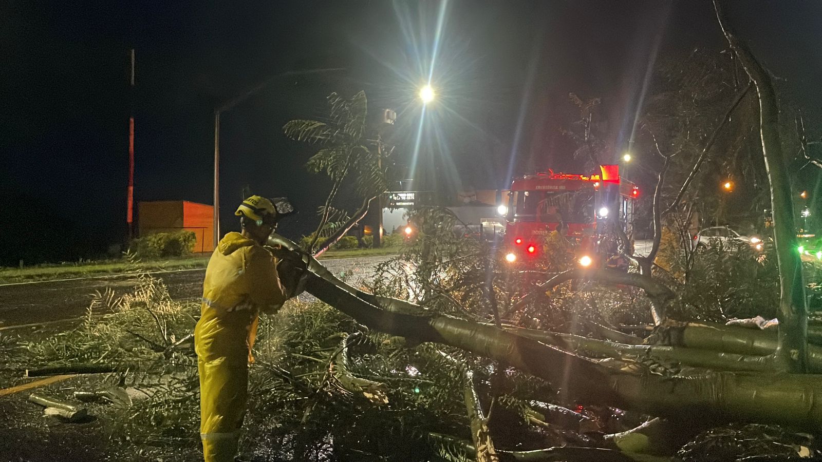 Em Dionísio Cerqueira, o Corpo de Bombeiros recebeu diversos chamados quase ao mesmo tempo. Uma das ocorrências mais preocupantes foi registrada na Avenida Arnaldo Busato, em Barracão, onde uma árvore caiu sobre a pista. Apesar do impacto e do susto, ninguém ficou ferido. O Repórter Everson Coutinho, esteve no local acompanhando o trabalho de limpeza da via, acompanhe abaixo.