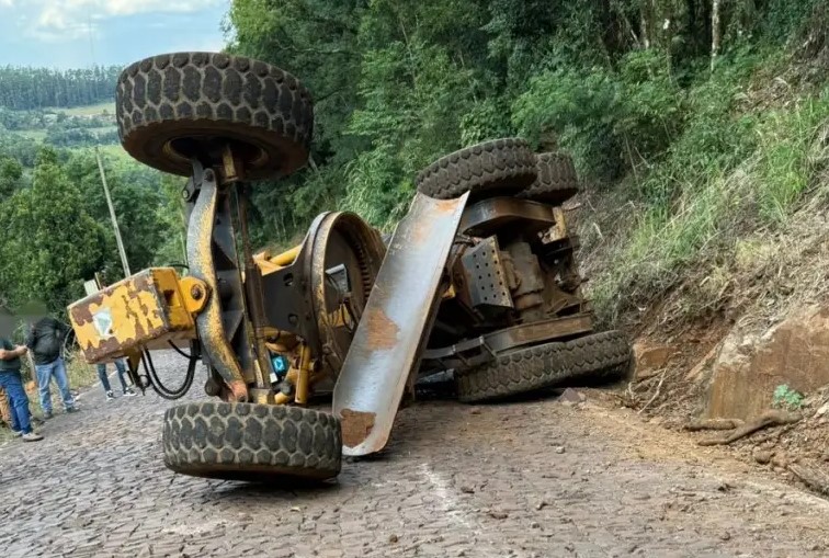 Uma motoniveladora (patrola) pertencente à prefeitura de Descanso tombou na tarde desta terça-feira (3) na linha Pratinha, no interior do município. De acordo com informações apuradas pela Progresso FM, o operador da máquina, apesar do susto, não se feriu.