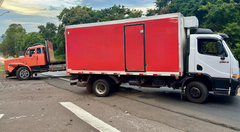Em determinado momento, o motorista do Scania teria invadido a pista à esquerda, atingindo a lateral do caminhão baú. Após a colisão, o condutor do Scania tentou fugir do local sem prestar atendimento.