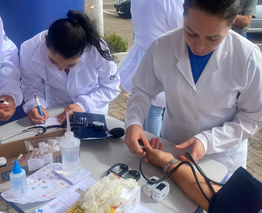 A iniciativa foi promovida pelo Hospital Municipal em parceria com a Secretaria de Saúde, oferecendo serviços como verificação de sinais vitais, orientações gerais de saúde, dicas com nutricionista e alongamentos com fisioterapeuta.